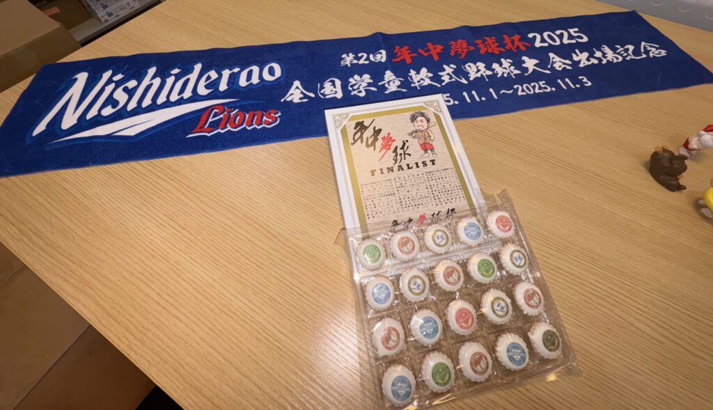 全国大会出場を記念して球団のロゴがプリントされたお菓子を頂きました!